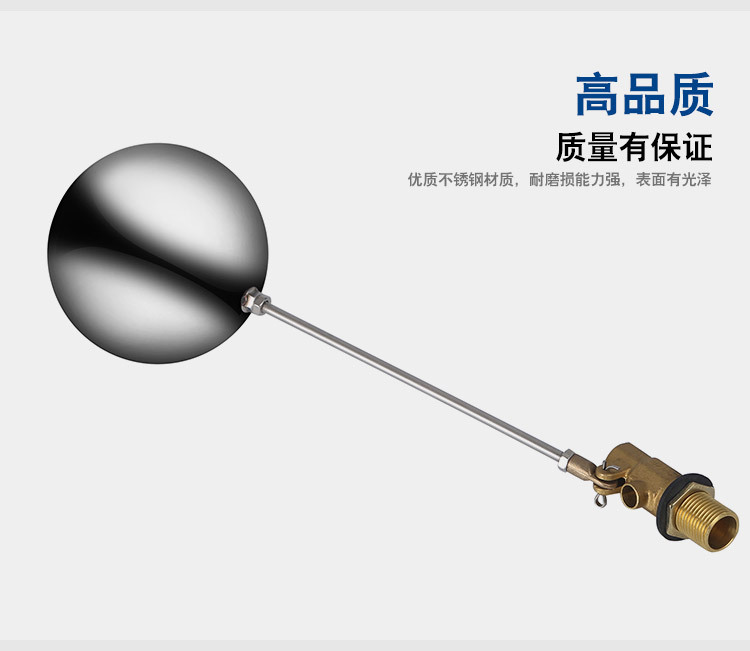 當(dāng)水塔內(nèi)水面下降時(shí),浮球下落,利用水管內(nèi)水的壓力,將閥體里的密封硅膠柱塞打開,閥體開啟供水,當(dāng)水塔水位上升時(shí),浮球上浮,連桿帶動(dòng)柱塞,硅膠體密封進(jìn)水孔,閥體停止供水.